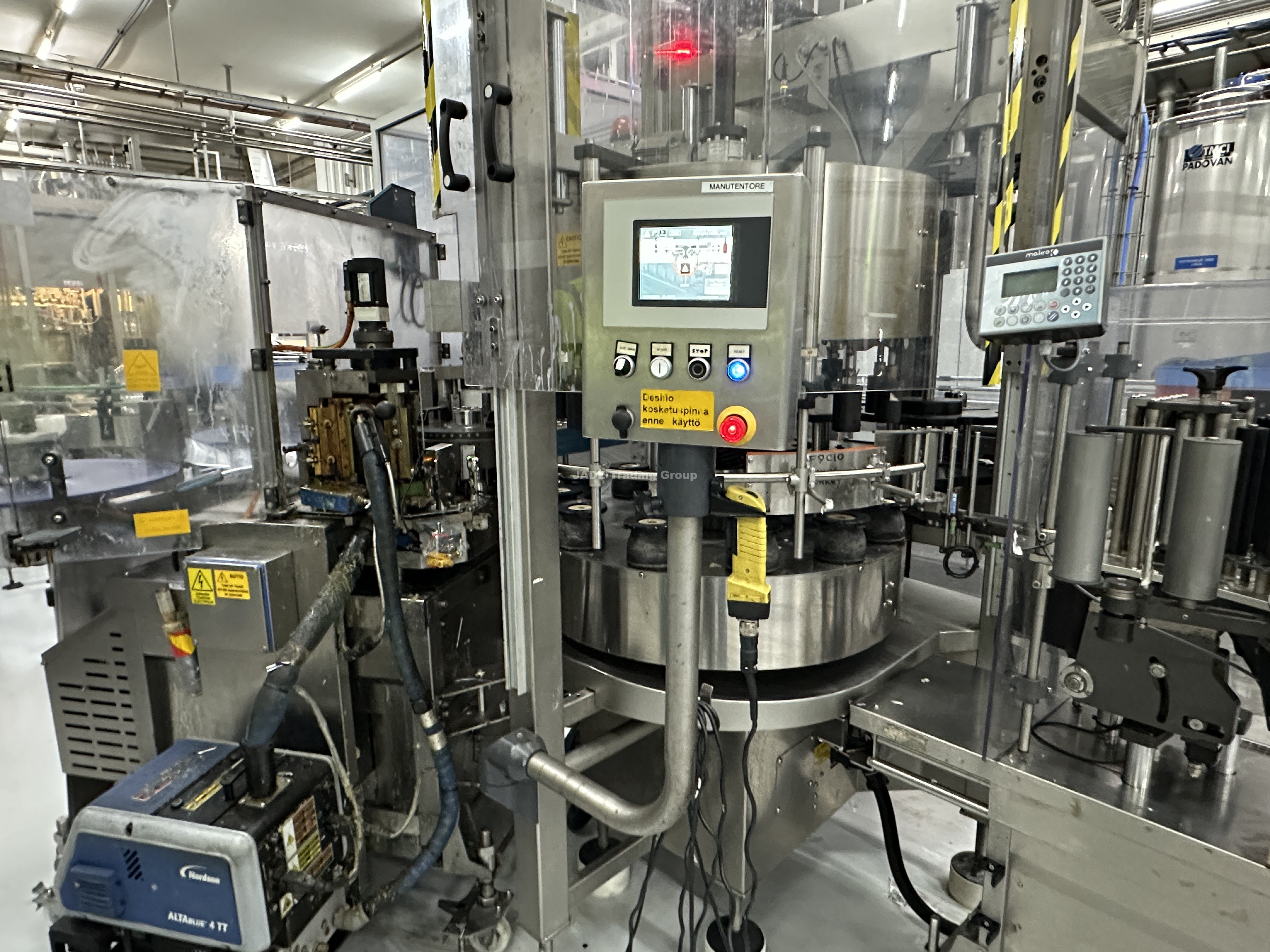 Gut erhaltene PET-Linie für CSD und nicht kohlensäurehaltige Produkte von zwei Vorform-Zuführsystemen bis zum Palettierer. Sie verfügt über doppelte SIPA-4-Kammer-Inline-Blasformen mit Vorform-Zuführsystemen, Füller-Verschließer ist ein isobarer Melegari-50-Ventil-Füller mit 8-Kopf-Arol-Verschließer für kurze PCO 1881-Verschlüsse.